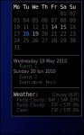 I also wrote a program for adding events to the calendar (zim-cal.py and zim-cal.ui). Select some text, run the program and double click the date to add your text to calendar. You can also input your own text by clicking the edit button (the big button on the right).